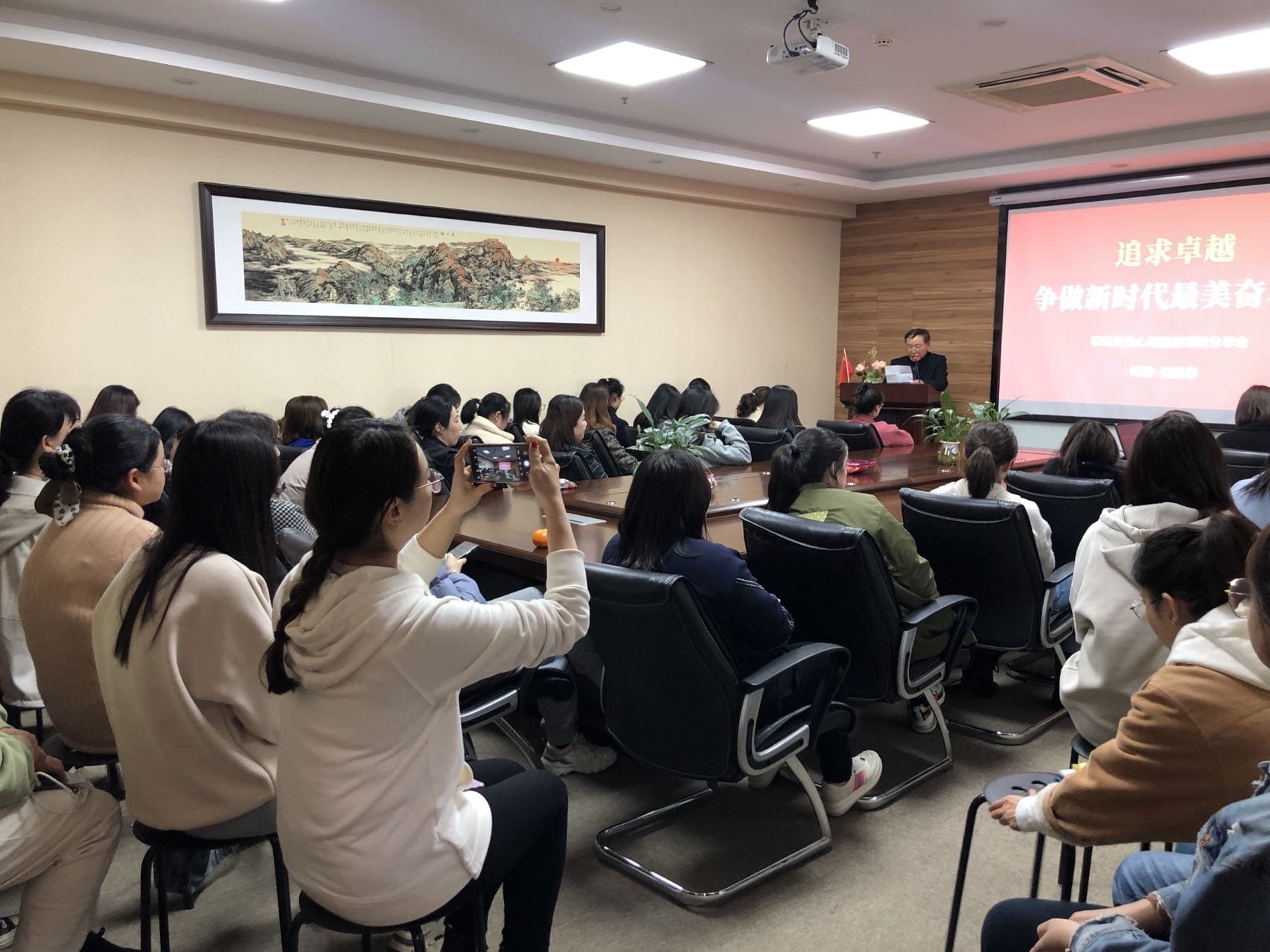 幸福女人,健康相伴。活動一開始,女職工們觀看了《尋幸福源泉,做幸福女性》心理健康視頻。隨后是本次活動的主題,先后邀請了王子梅、賈槚、孫靜等十位女職工代表上臺發言,她們分別就“如何處理好工作與家庭關系”、“怎樣調節工作壓力”、“怎樣做自強不息的新時代奮斗者”等話題,交流分享了自己的見解和感悟,代表們的精彩發言,感人至深,震撼心靈,贏得了陣陣掌聲。