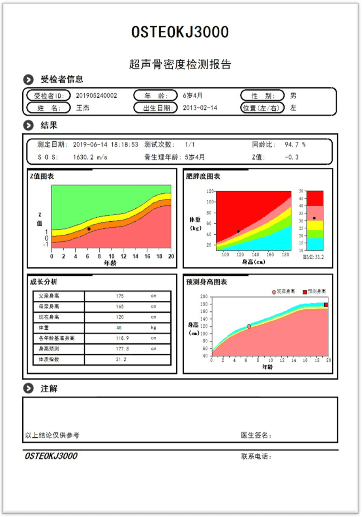 OSTEOKJ3000型超聲骨密度儀測量報告說明