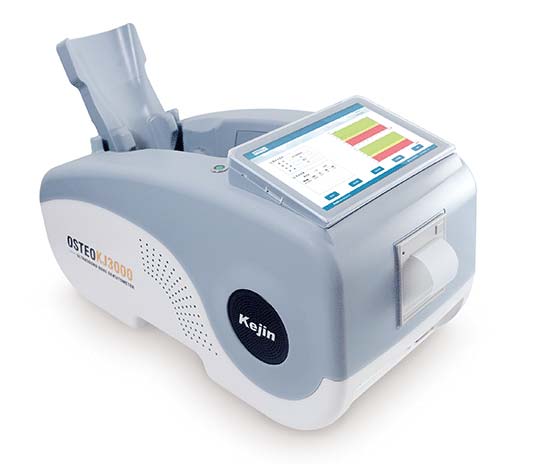 OSTEOKJ3000系列跟骨超聲骨密度儀,是南京科進公司自主研發的創新產品,取得了2項國家發明專利,5項實用新型,1項外觀專利和6項軟件著作權,OSTEOKJ3000S/S+型號是系列產品中的高端型號,產品為一體式設計,內置電腦系統,采用柔性油囊探頭,氣壓檢測自動夾緊,觸摸屏操作,內置打印機,可采用二維碼掃描發送檢測報告,是替代進口同類產品的創新產品。