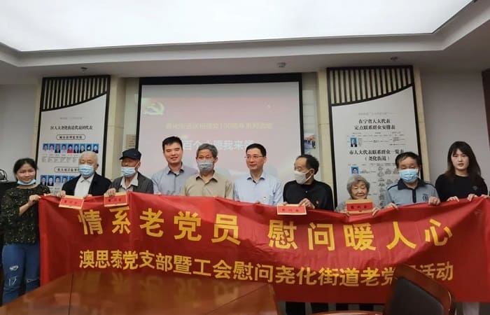 作者:科進 瀏覽:282 發(fā)布時間:2021/5/31 16:08:00“情系老黨員,慰問暖人心”。2021年5月28日,中共澳思泰黨支部書記俞政君帶領(lǐng)公司黨員和干部慰問了堯化街道部分老黨員,這是在慶祝建黨100周年之際,公司黨支部開展黨史學(xué)習(xí)教育系列活動之一,旨在關(guān)心老同志,學(xué)習(xí)老黨員,交流學(xué)習(xí)心得,傳承紅色傳統(tǒng),弘揚革命精神。
